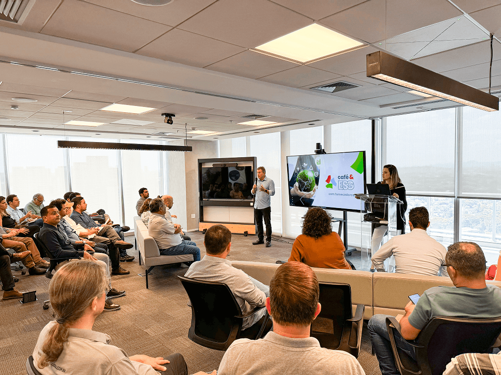 O Café ESG foi um encontro enriquecedor e engajador, dedicado a práticas relacionadas à agenda ESG. Esse evento representou uma excelente oportunidade para fortalecer parcerias, alinhar nossas práticas de sustentabilidade e identificar oportunidades de inovação na cadeia de suprimentos.